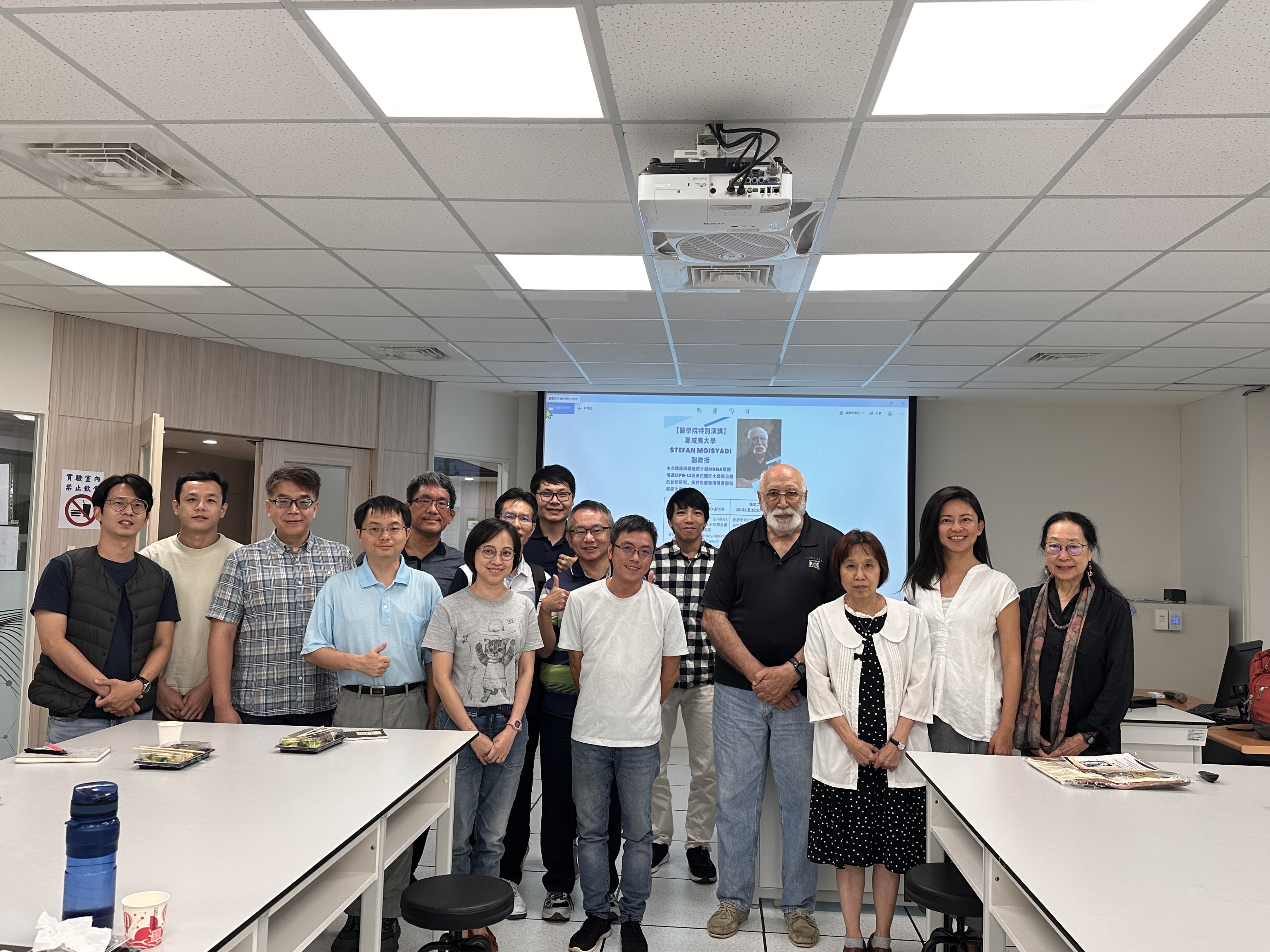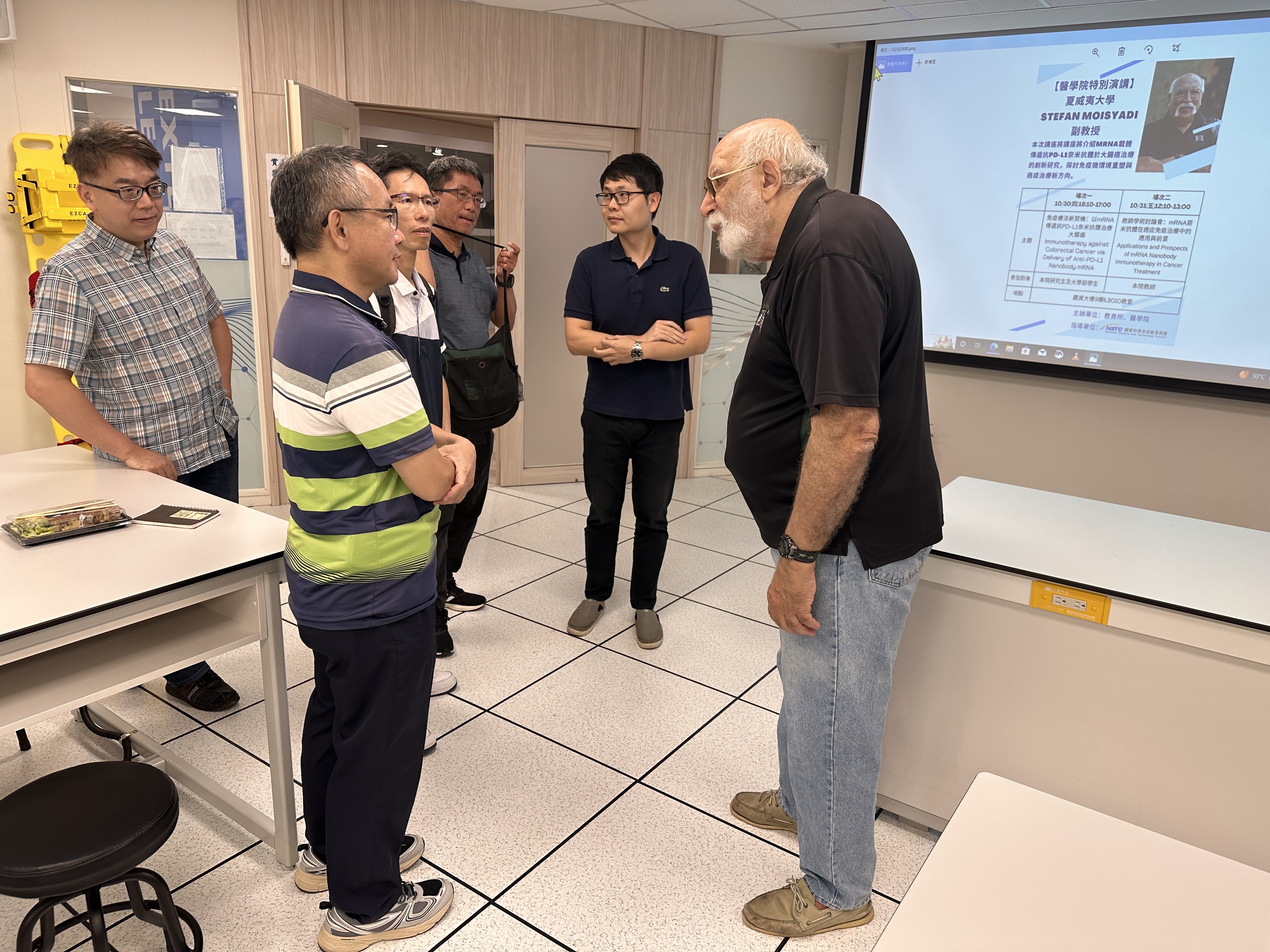 本院自2022年設立以來,積極拓展國際交流網絡,與海外大學及學者交流,建立合作關係。2025年10月30日至31日,夏威夷大學John A. Burns School of Medicine的Stefan Moisyadi副教授蒞臨本院,針對其最新發表之論文「Immunotherapy against colorectal cancer via delivery of anti-PD-L1 nanobody mRNA」,進行專題演講。演講內容深入淺出,涵蓋免疫療法在癌症治療上的創新應用,吸引眾多師生參與。現場聽眾專心聆聽,Q&A環節互動熱烈,師生皆表示獲益良多,對相關研究領域有更深入的理解與啟發。
