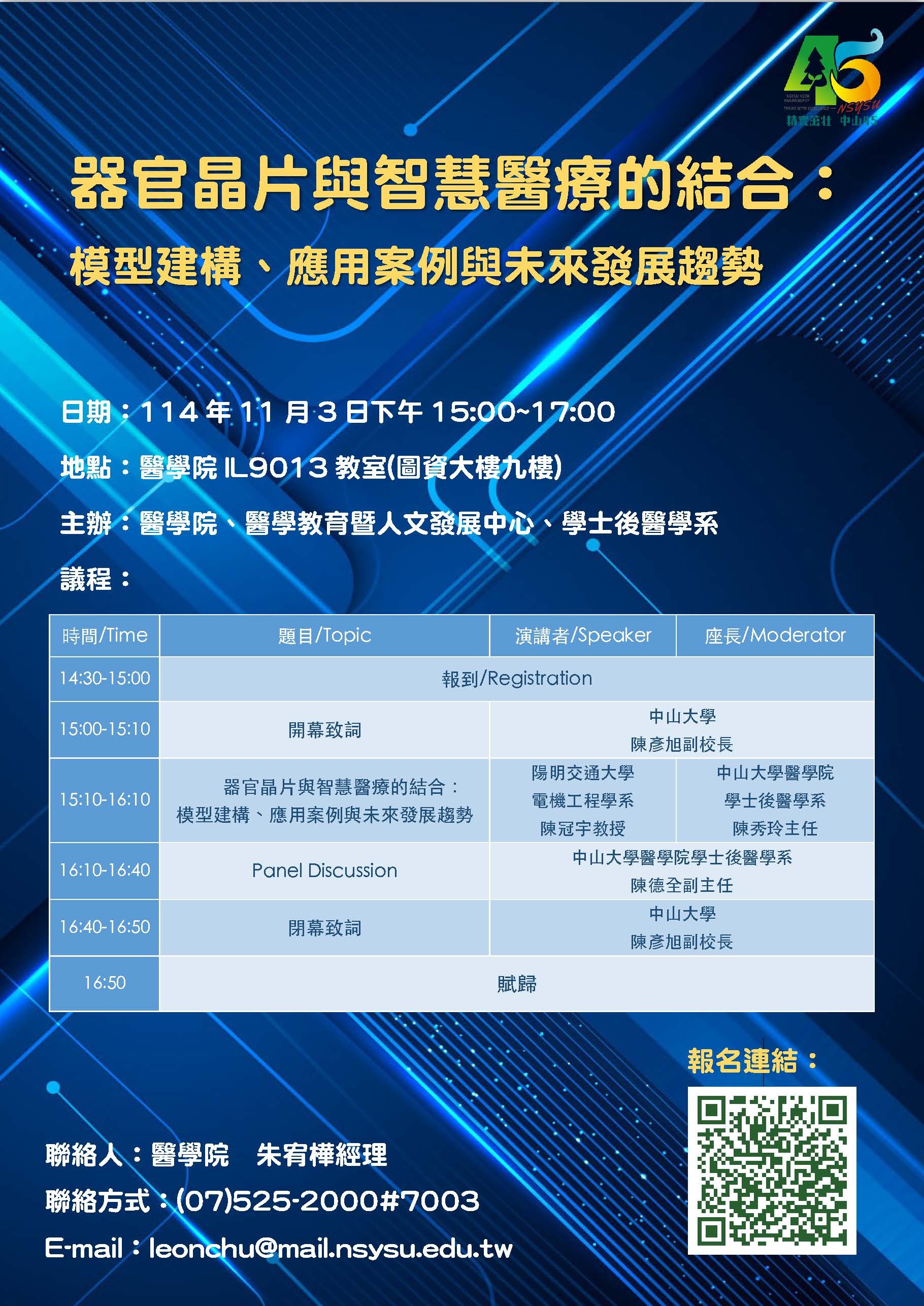 【2025110315】 醫學教育暨人文發展中心專題演講-器官晶片